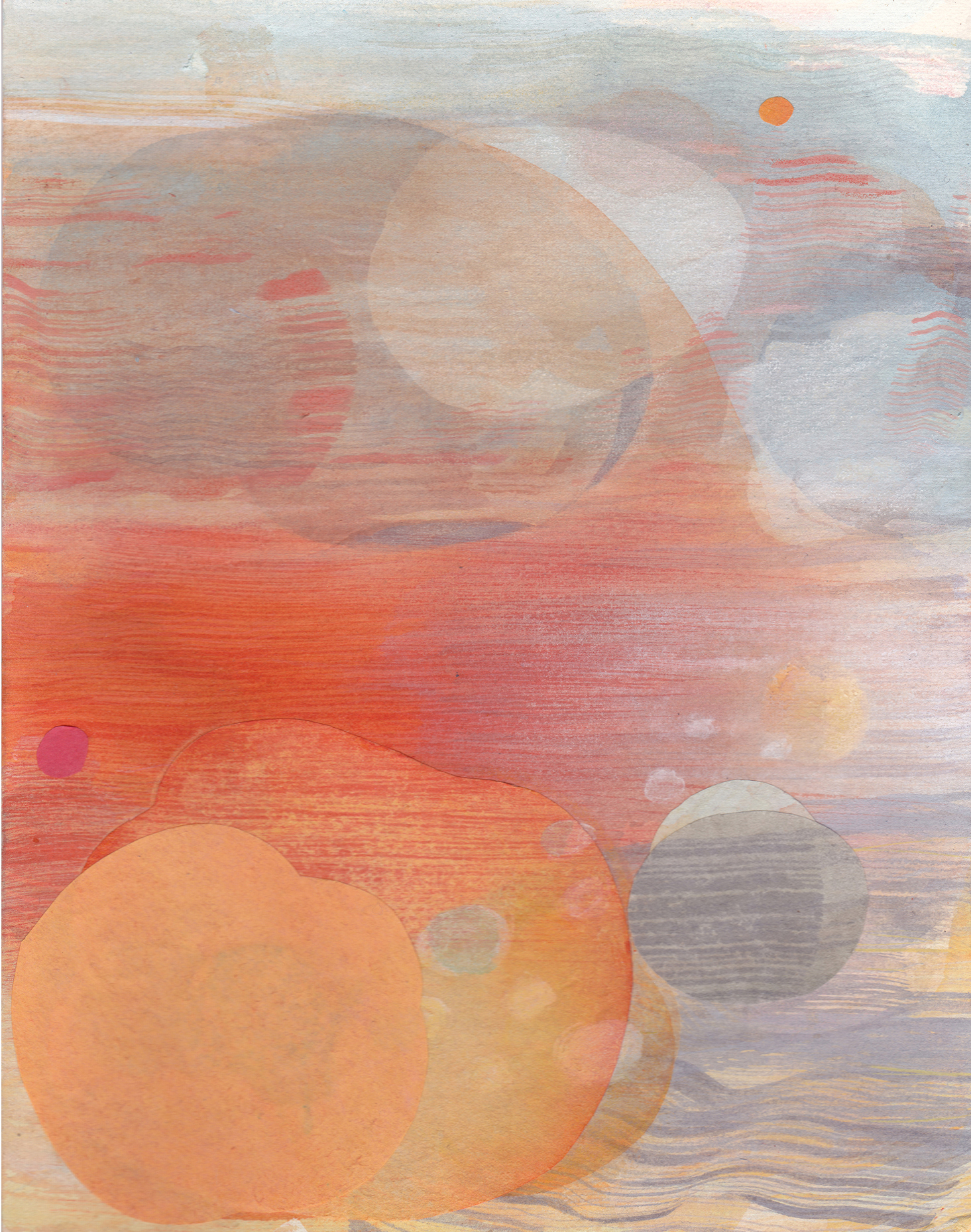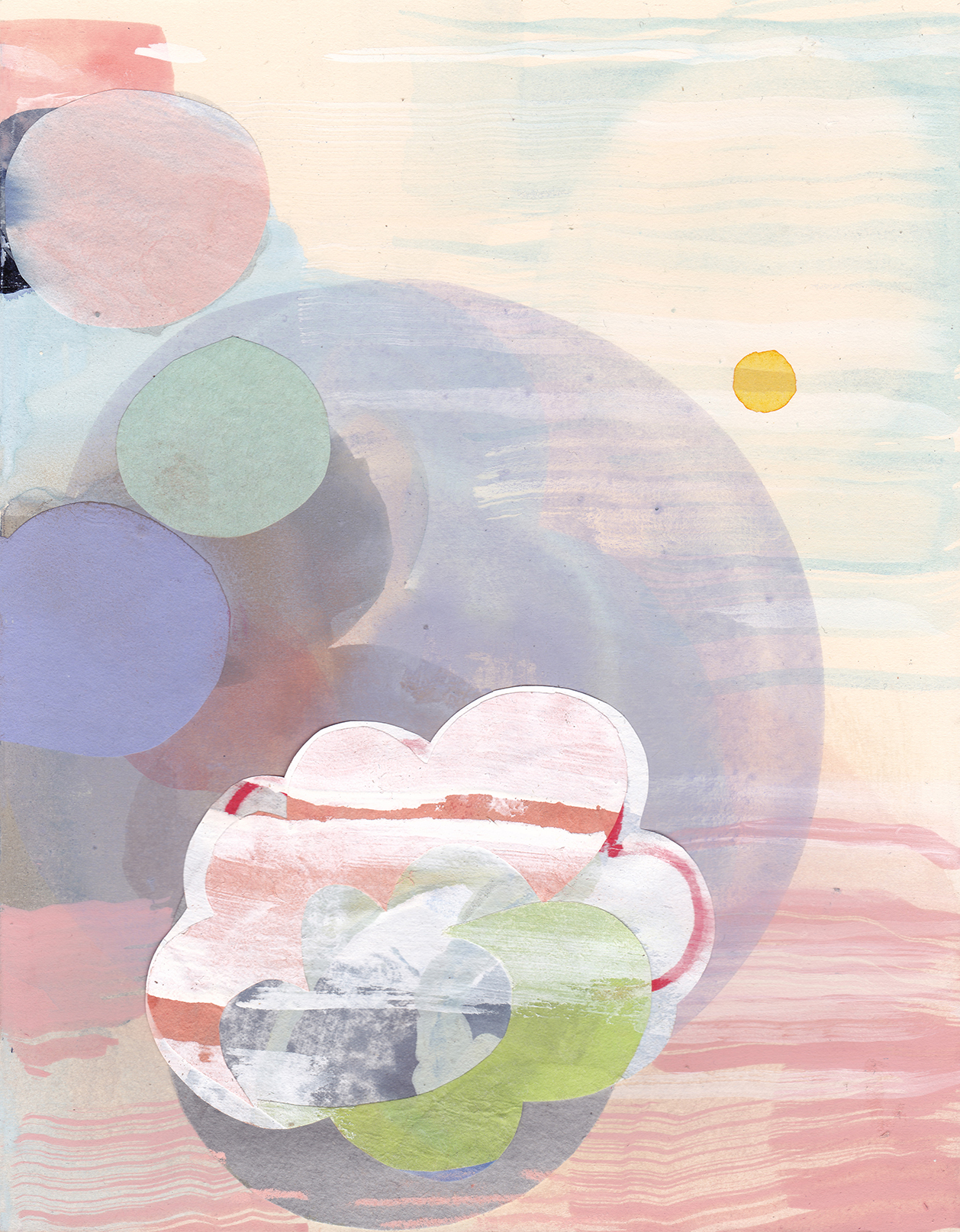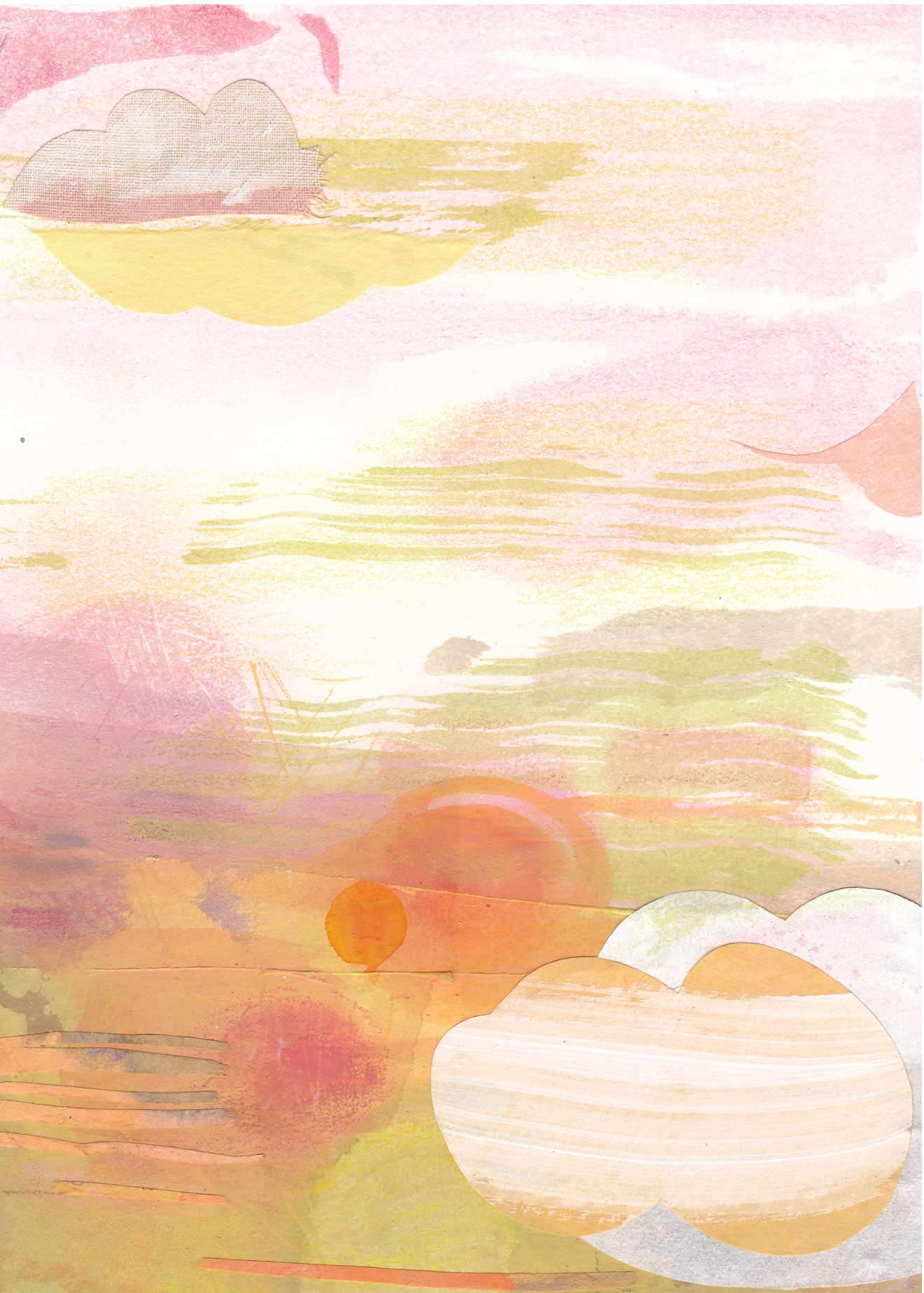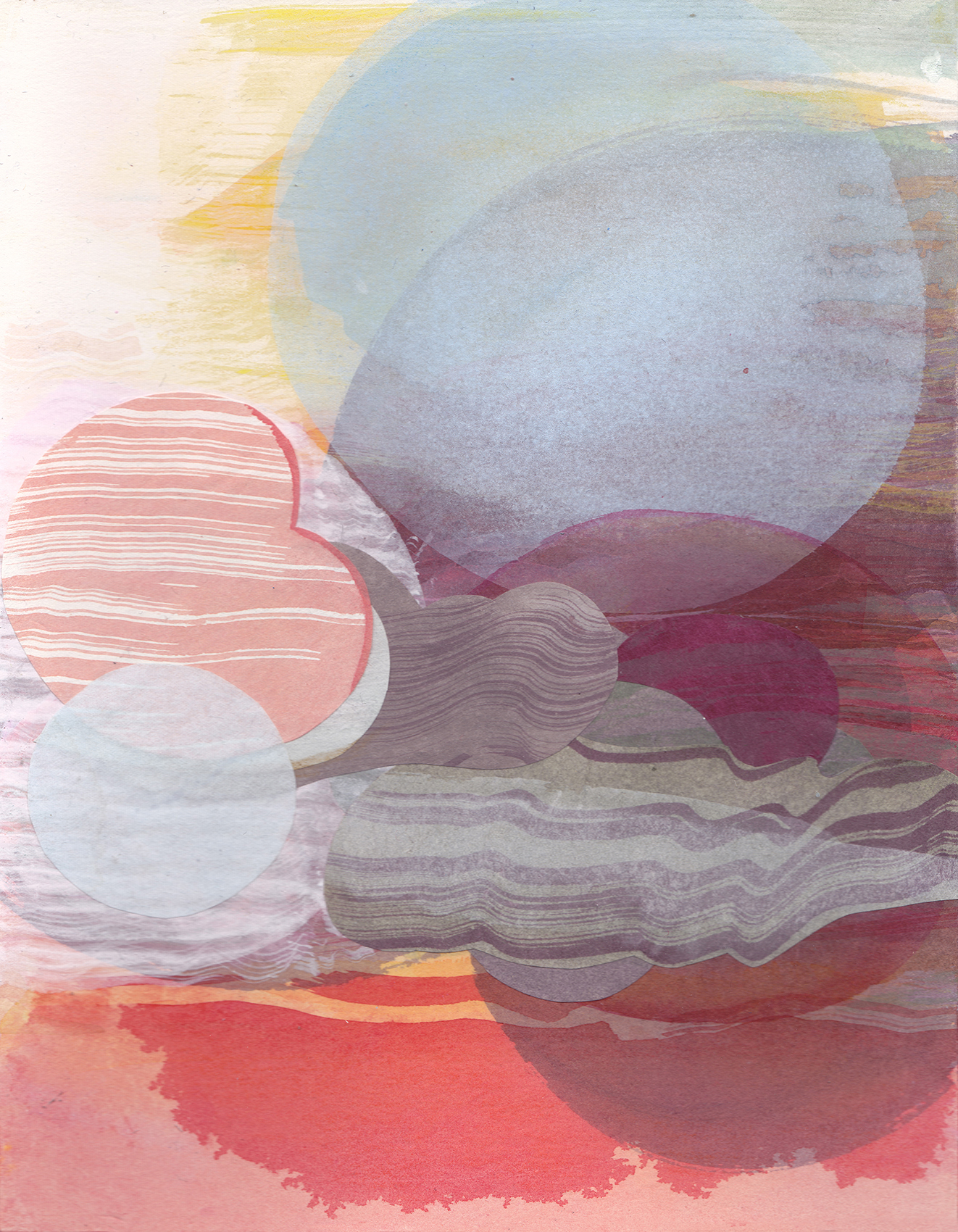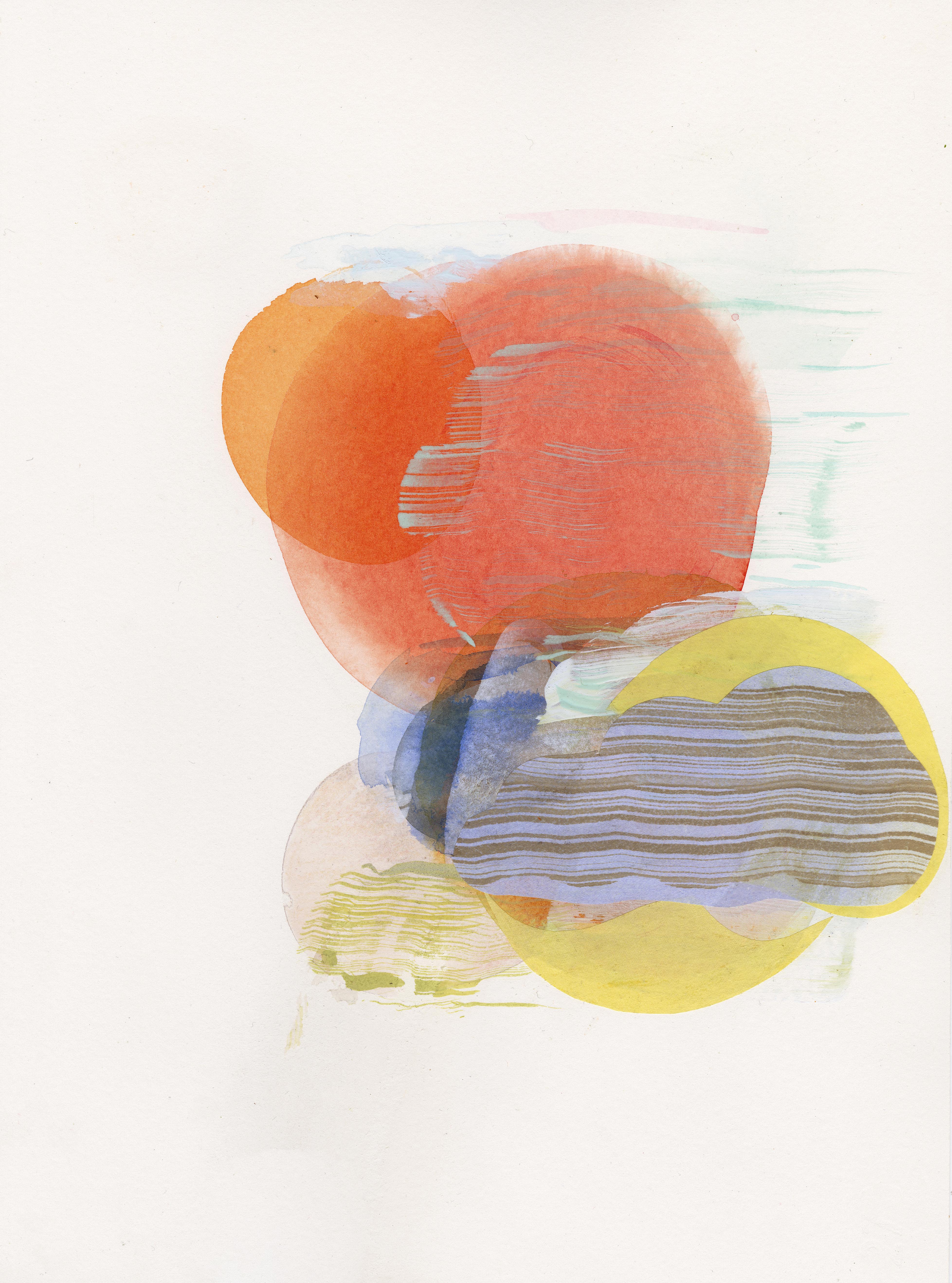 As well as the fluidity of the painted surface I have used collage to define the edge of shapes, playing with the relationship between the two, where edges become ambiguous.
