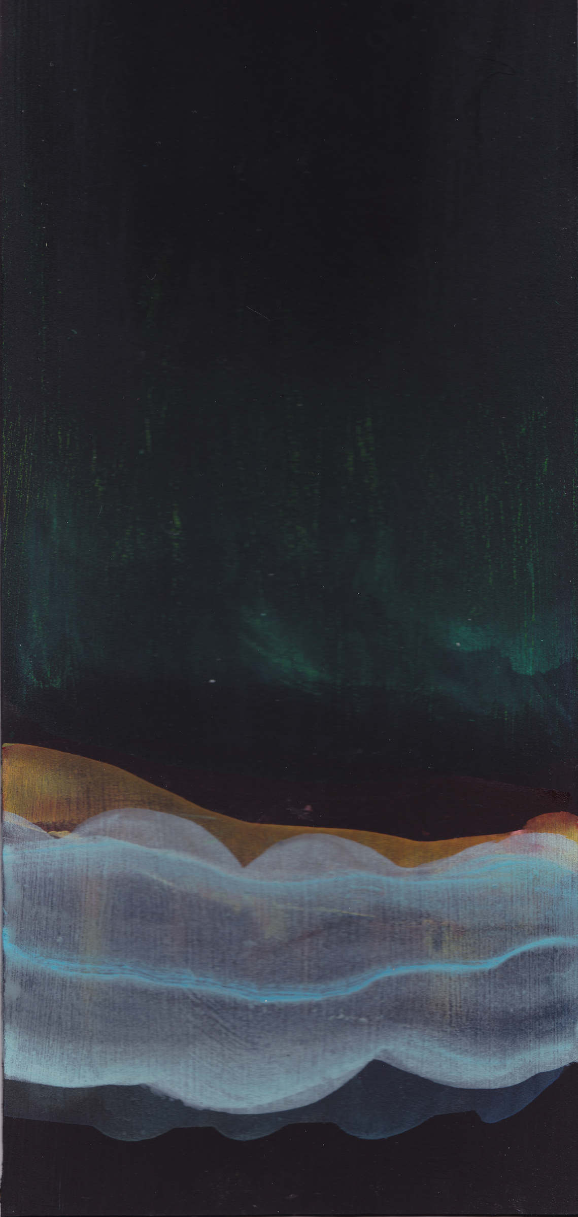 Materially, these paintings grew from experimenting whilst working on a dark watercolour ground on paper. I used mixed media - concentrated watercolour, ink, pastel & pencil. Layers were built up until each painting arrived at an image that resonated with me.
